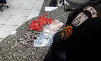 Homem de 20 anos foi preso com 764 pinos de cocaína, 282 papelotes de maconha, arma e munições A Polícia Militar capturou um foragido da justiça...