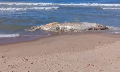 Animal foi encontrado encalhado na areia da praia de Unamar na manhã de segunda-feira (26) Bertha Muniz A carcaça de uma baleia foi encontrada na manhã...