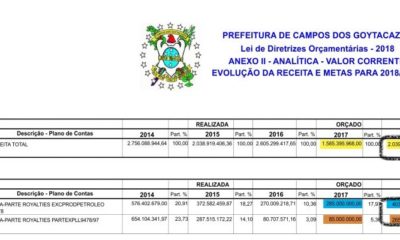 Prefeitura de Campos revelou que previsão de aumento na arrecadação de royalties para 2018 foi calculada com base em estudos da ANP Foto: Reprodução ...