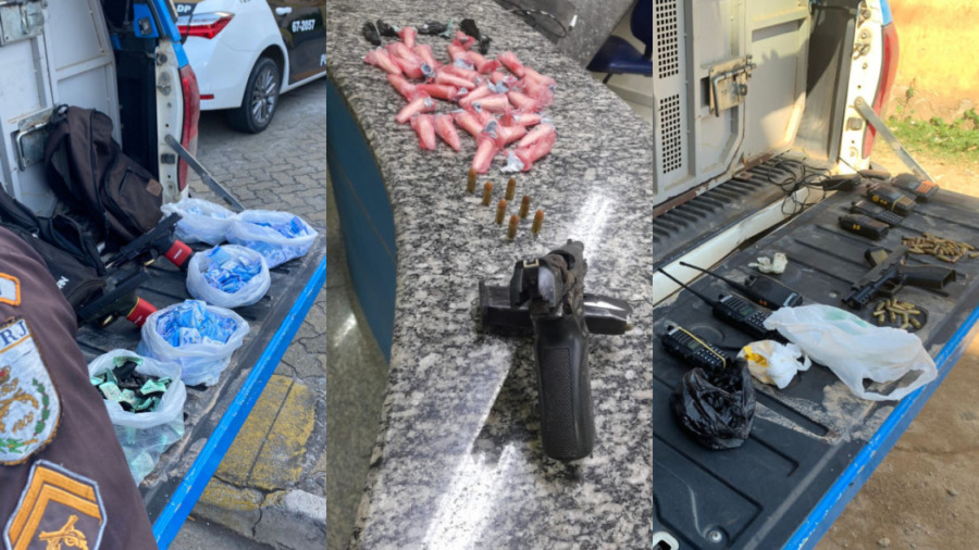 Armas, munições, rádios e drogas foram apreendidos pelos militares nas ações