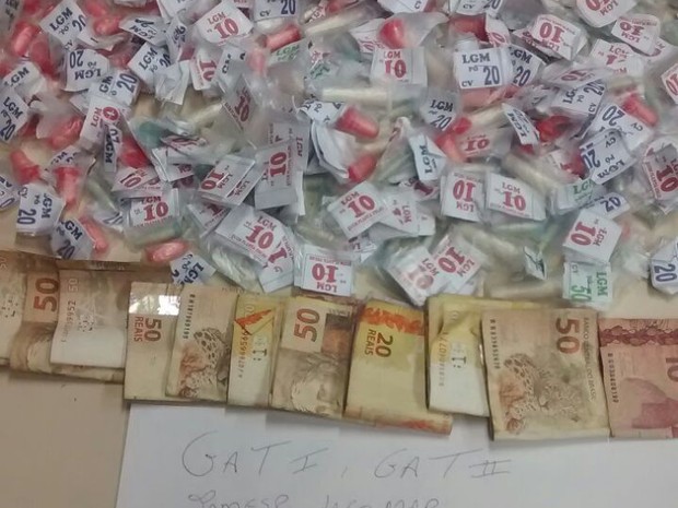 Os policiais disseram ainda que o material foi encontrado dentro de um guarda-roupa. Lá foram apreendidos 187 pinos de cocaína e 1.215 reais.
