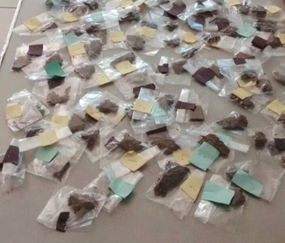 Na ação foram encontrados 16 pinos de cocaína e 65 buchas de maconha. O material estava escondido em uma sacola plástica