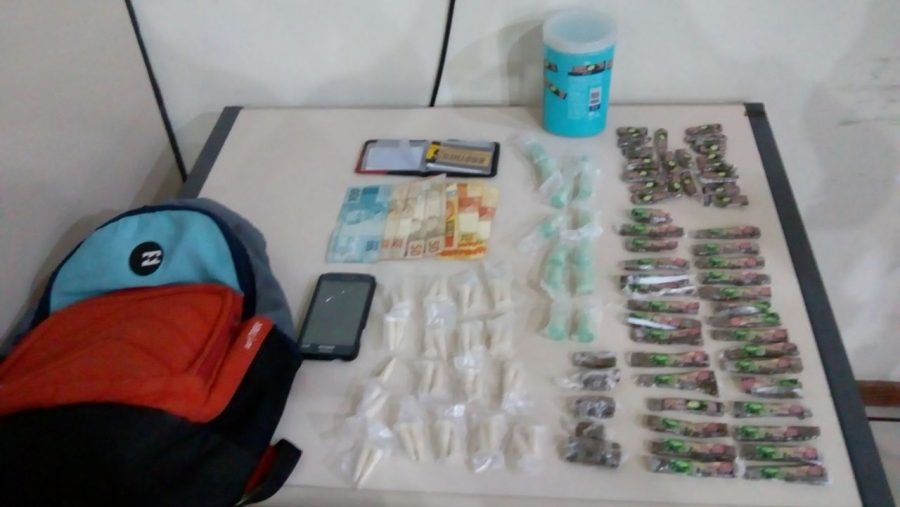 Durante a abordagem, ele confessou aos agentes que guardada drogas em sua casa e que seria gerente do tráfico na localidade. No imóvel a polícia arrecadou 55 tabletes de maconha, 48 pinos de cocaína e R$ 360 em espécie.