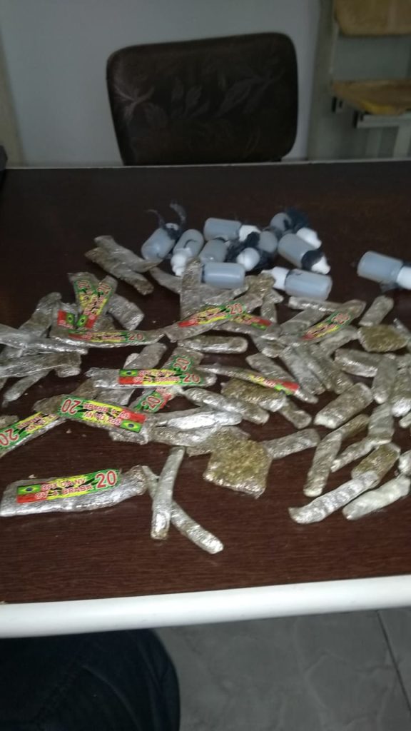 Com o menor foram apreendidos com 71 embalagens de maconha e dez frascos de loló.