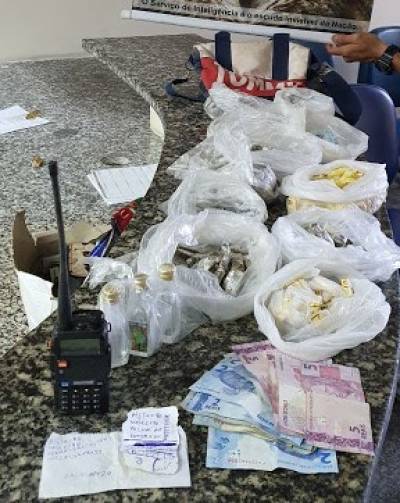 Com ele foram arrecadadas 115 cápsulas de cocaína, 340 trouxinhas de maconha, rádio transmissor, dinheiro e anotações do tráfico.