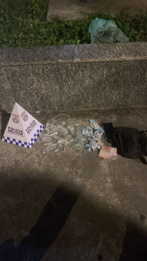 O adolescente ainda tentou fugir ao perceber a presença dos policiais. Na abordagem, foram encontradas 22 cápsulas de cocaína, 24 buchas de maconha, 42 buchas de haxixe e R$ 15,00 em dinheiro.