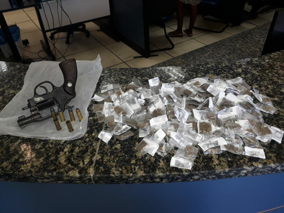 Com o suspeito, de 17 anos, foram apreendidos um revólver calibre 38 e 144 tabletes de maconha.