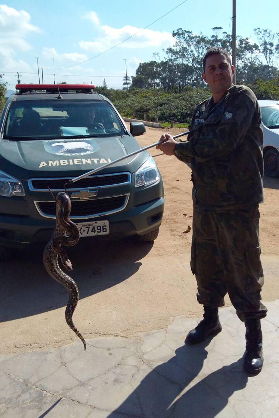 Na manhã desta terça-feira (20), a Guarda Ambiental resgatou uma jiboia no Forte Marechal Hermes. De acordo com o comandante da Guarda Ambiental, Jornanes de Souza, o animal foi encaminhado para a Secretaria de Ambiente, que verificou as condições de saúde do animal e soltou o réptil na mata, na BR 101.