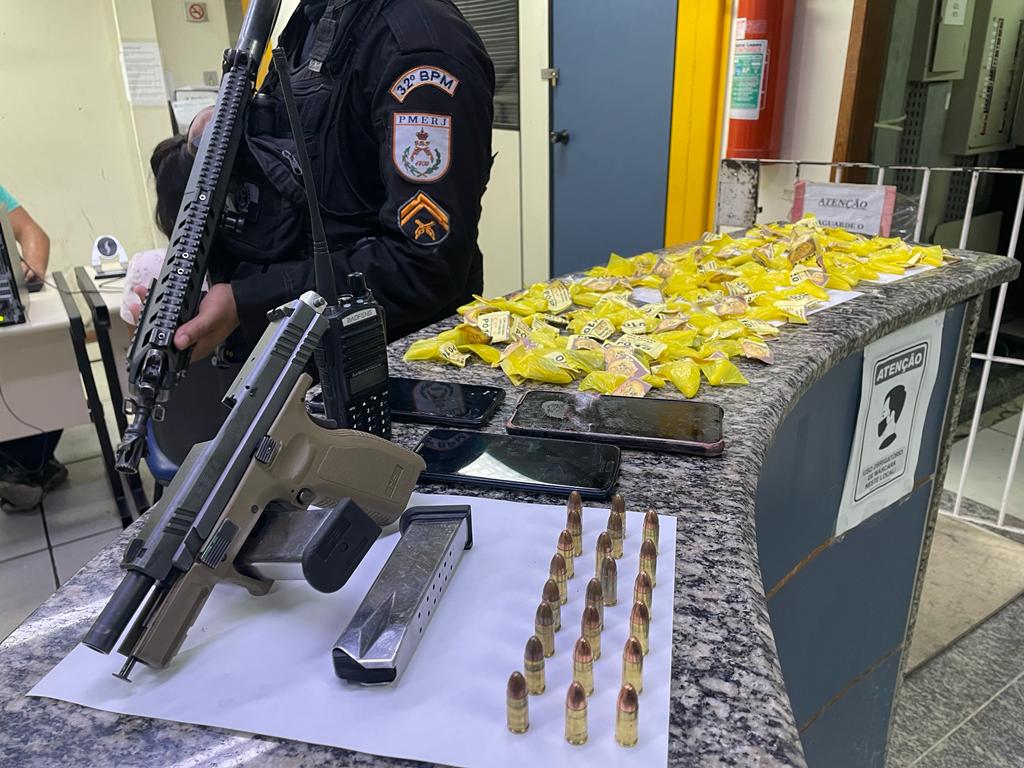 Já Josué e Paulo André exerciam a função de gerentes do tráfico, ainda de acordo com a PM. Durante a ação foram apreendidos: 97 pinos de cocaína, uma pistola, munições, um rádio transmissor e três aparelhos celulares. A ocorrência foi registrada na 128ª Delegacia Policial (128ª DP).