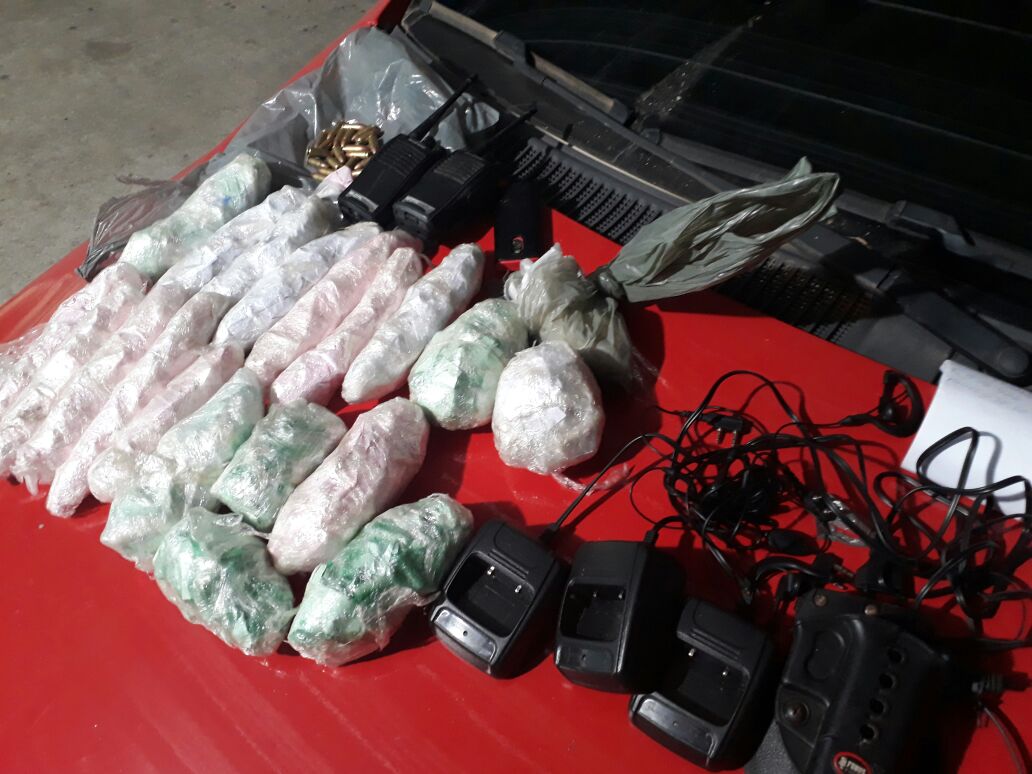 Na ação foram apreendidas 1.200 cápsulas de cocaína, 19 trouxinhas de maconha, munições e materiais de uso do tráfico