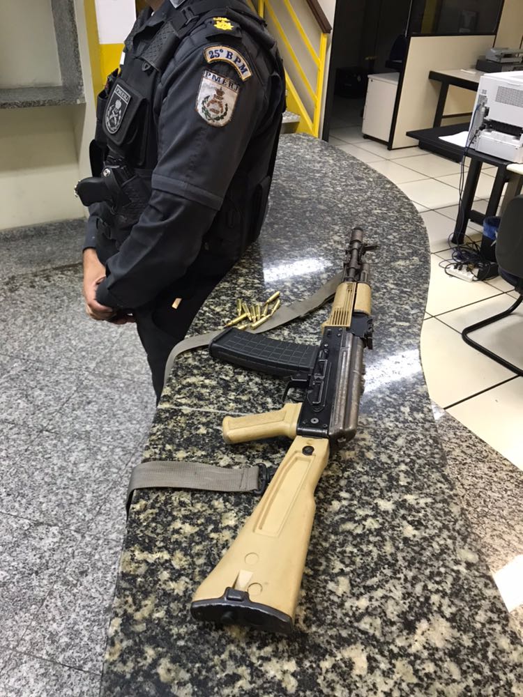 A Polícia Militar apreendeu um fuzil após troca de tiros no fim da noite de quarta-feira (18), em Cabo Frio, na Região dos Lagos. A ação foi deflagrada após denúncias de que havia traficantes armados em uma localidade conhecida como Morro de São Jorge. Segundo a PM, vários homens entraram em confronto com os agentes e fugiram em seguida. O fuzil, modelo AK com 10 munições, foi apreendido no chão após a fuga dos bandidos. O tiroteio ocorreu na Rua das Andorinhas, na comunidade Rainha da Sucata. Ninguém foi preso.  O material foi levado para a 126ª Delegacia de Polícia de Cabo Frio (126ª DP).