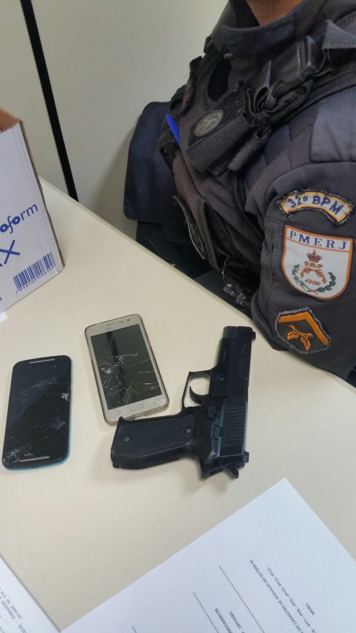 Uma perseguição policial terminou com a prisão de um jovem de 19 anos e na apreensão de um adolescente de 17, suspeitos de praticarem uma série de assaltos na região central de Barra de São João, em Casimiro de Abreu, na noite de sexta-feira (30). Um deles foi detido na ponte do distrito e outro na Praça das Primaveras. Com eles, foram apreendidos uma pistola, dois celulares e materiais furtados. A perseguição aconteceu após denúncias anônimas. Os dois confessaram terem cometido os crimes e conduzidos para a 128ªDelegacia Policial Rio das Ostras (128ª DP).