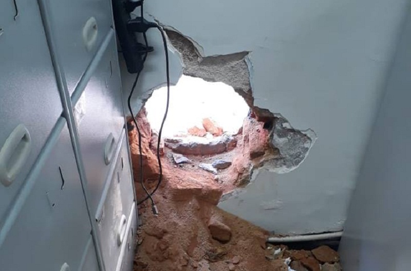 Agora a Polícia Civil local está investigando o arrombamento. Para o azar dos bandidos, o sistema de alarme e do circuito fechado de segurança está funcionando e todas as fitas de vídeo gravadas serão assistidas na tentativa de identificar os autores do arrombamento. Os bandidos chegaram a quebrar a parede com uma marreta e fizeram um rombo que dá acesso até a sala da tesouraria da agência. Durante a ação criminosa, o alarme do banco disparou e os bandidos fugiram deixando para trás todas as ferramentas que seriam utilizadas no furto. Com a chegada da PM após a fuga dos arrombadores, o gerente da agência foi acionado e ele verificou que os marginais não tiveram tempo de roubar nenhuma quantia, que estava guardada no cofre.