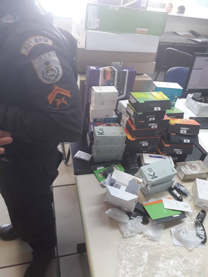 O material roubado foi encontrado abandonado dentro de um carro no bairro Cidade Praiana, poucas horas após o assalto.O material roubado foi encontrado abandonado dentro de um carro no bairro Cidade Praiana, poucas horas após o assalto. Ainda de acordo com a PM, foram recuperados 35 aparelhos celulares, um videogame, quatro notebooks e uma TV. O material foi levado para a 128ª Delegacia Policial de Rio das Ostras (128ª DP), onde a ocorrência foi registrada. As imagens do circuito interno de segurança da loja flagraram a ação. A gravação será entregue à Polícia Civil para auxiliar na identificação dos acusados.