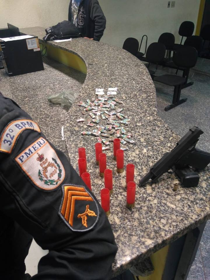 Policiais Militares do 32º BPM (Macaé) prenderam em flagrante o proprietário de uma barbearia, por tráfico de drogas e posse ilegal de arma, na noite desta quarta-feira (26), no bairro Parque Aeroporto, em Macaé.