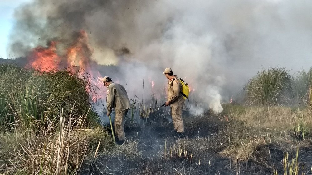 Segundo a corporação, quatro viaturas e 10 agentes trabalharam para conter as chamas nas regiões de São José, condomínio Caravellas Pitta e Tucuns, que foram combatidos no domingo (3).