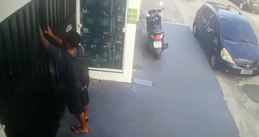O criminoso aparece no vídeo no momento em que tenta abrir um portão. Ele desliza as mãos pela fenda à procura de um trinco. Por sorte, o portão estava trancado e o ladrão não teve sucesso no crime.