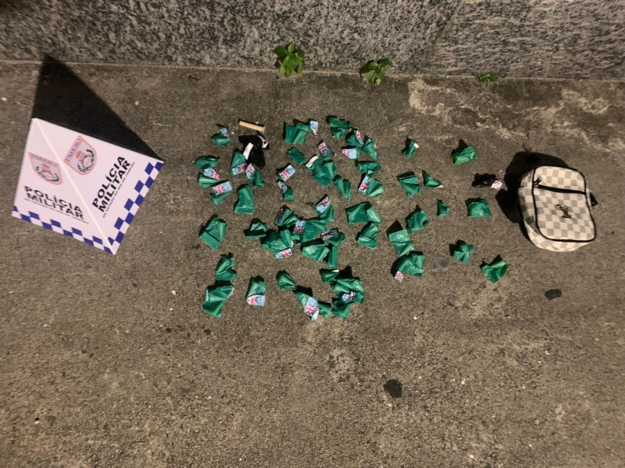 Chegando ao local, os agentes encontraram duas pessoas com as mesmas características da denúncia. Durante a abordagem, os policiais encontraram drogas em uma bolsa. O homem tem 21 anos e a mulher tem 24. Eles confessaram envolvimento com o tráfico e também indicaram onde escondiam o restante do material.