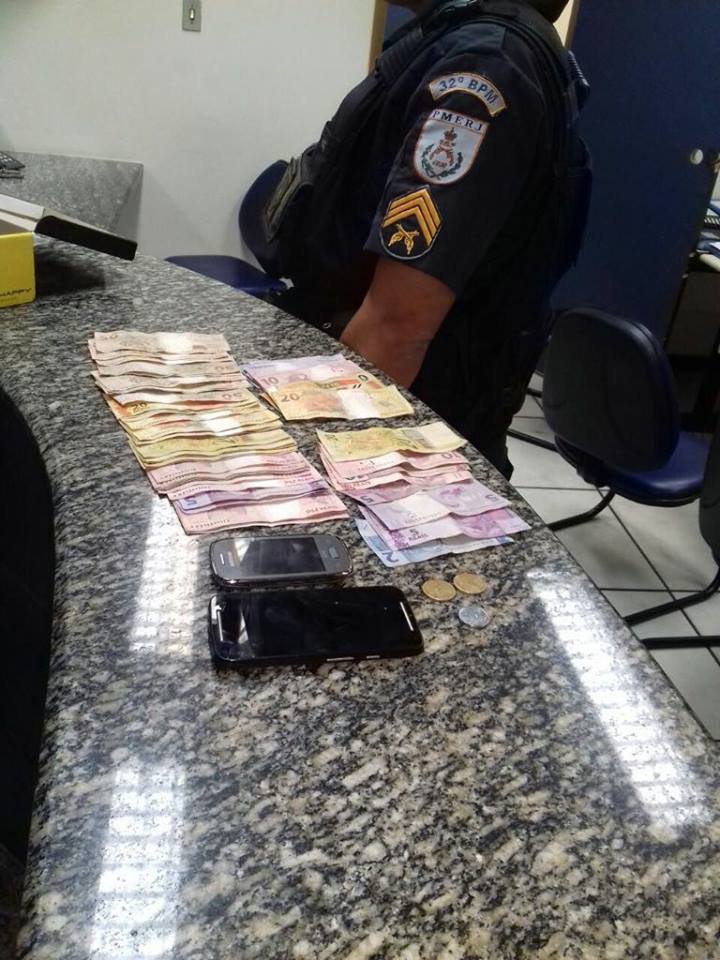 Segundo a PM, com eles, foram arrecadados R$ 1.244,00 em espécie.