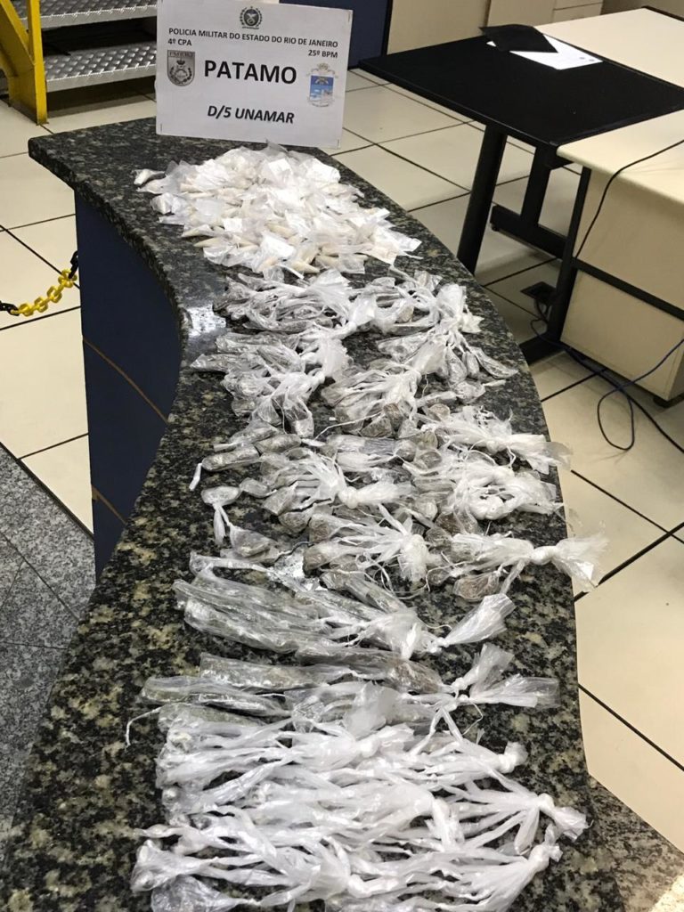 Um jovem de 18 anos foi preso em flagrante por tráfico de drogas, na noite desta quarta-feira (5), em Unamar, bairro de Tamoios, distrito de Cabo Frio, na Região dos Lagos.