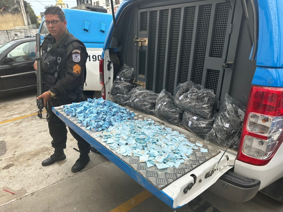 Em continuidade à ação, os militares foram até à residência do elemento, no Córrego do Ouro, onde arrecadaram mais material entorpecente, a ser contabilizado.