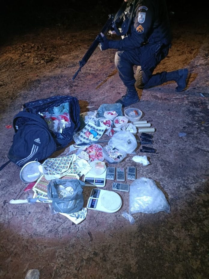Após receber informações de que diversos suspeitos estavam fazendo a endolação de material entorpecente e praticando tráfico de drogas, a PM foi até o endereço e avistou os elementos. Ao perceberem a chegada da viatura, os homens fugiram. Após cerco tático, a equipe abordou o suspeito em posse de uma mochila contendo o material entorpecente.