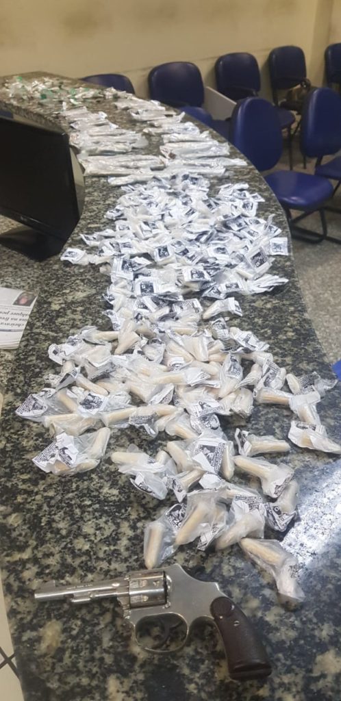 Na ação foram apreendidas 11 cápsulas de cocaína e um revólver calibre 38 com seis munições.