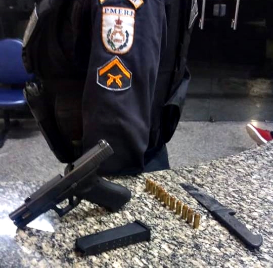 Dois suspeitos foram presos e um menor apreendido pela Polícia Militar (PM) com uma pistola Glock calibre 40 e 10 munições na noite desta quinta-feira (25), em Rio das Ostras. Segundo informações da PM, a equipe da 3ª CIA do 32º Batalhão da PM, estava em patrulhamento na Rua das Flores, no bairro Peroba quando avistaram um carro em atitude suspeita com os três suspeitos, dois maiores, de 21 e 30 anos, e um menor de 16 anos.
