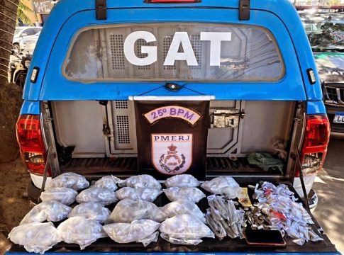 De acordo com a Polícia Militar (PM), agentes do Grupamento de Ações Táticas (GAT) realizaram uma incursão na comunidade e observaram os dois elementos, com uma sacola em mãos, no Beco da Colômbia.