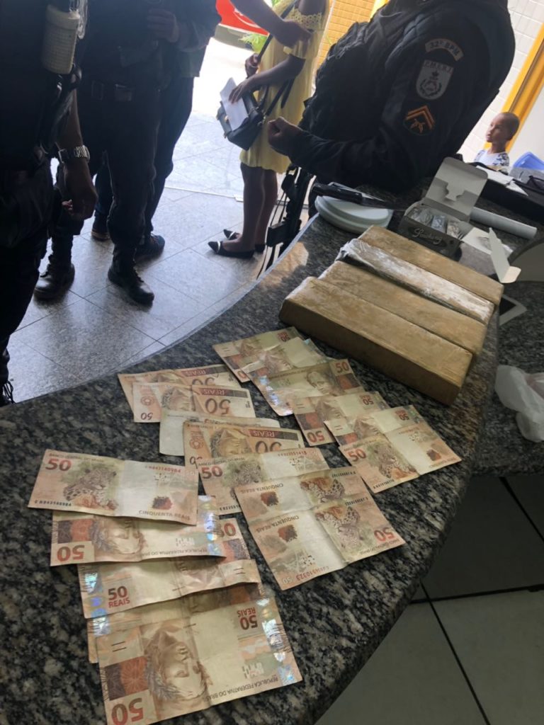 Equipes 3ª Companhia do 32°BPM realizaram cerco e abordaram dois suspeitos, identificados como Adriano Silva Melo e Alex Tomé de Souza, em uma motocicleta. Durante revista pessoal foi encontrada a quantia de R$ 850 em espécie com um dos suspeitos, que informou estar guardando drogas em sua residência.