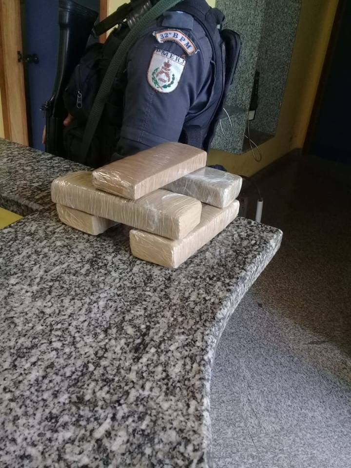 Ao todo cinco tabletes da droga foram encontradas dentro do carro em que as suspeitas estavam.