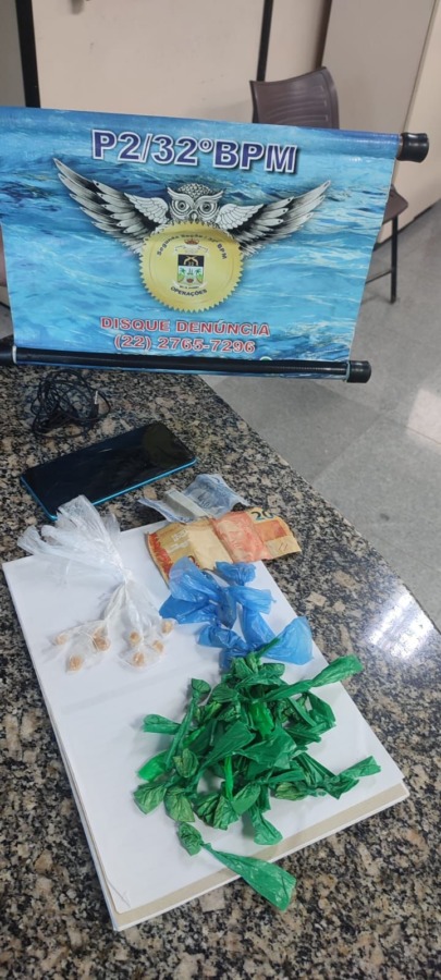 Ao avistar a viatura ele tentou escapar com o comparsa, mas acabaram sendo abordados com R$ 22 em espécie e um aparelho celular. Em revista no local, os militares encontraram cinco buchas de maconha e 33 sacolés de cocaína. A dupla foi encaminhada para a 123ª Delegacia de Polícia (123ª DP), autuada e presa.