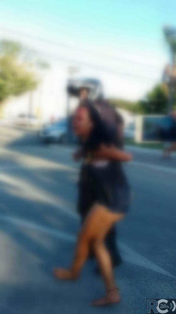 A discussão atraiu vários curiosos, inclusive alguns incitando a confusão, segundo disse a PM. Os nervos se acirraram e com a negativa dos dois perante uma ordem policial, um deles chegou a sacar uma arma no meio da multidão. A menor continuou a discutir e quando o policial tenta imobilizá-la por desacato, ela se debate, tenta agredir o PM e acaba levando uma coronhada na testa, causando grande ferimento.