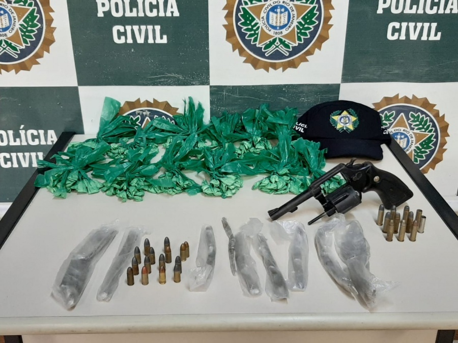 Durante a operação, os policiais apreenderam um revólver, 25 munições, drogas e R$ 199 em dinheiro.