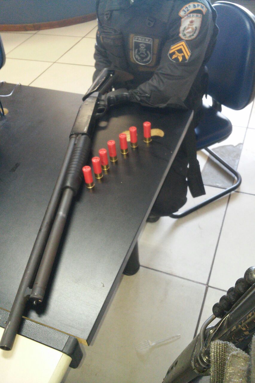 Na Avenida Campomar, em Rio das Ostras, policiais militares apreenderam uma escopeta calibre 12, além de munições.  Segundo a PM, a arma, que tem o uso permitido, foi encontrada dentro de um veículo L200 Triton, ocupado por três homens. Um deles assumiu ser o dono da arma. Ele foi levado à 128ª Delegacia de Polícia de Rio das Ostras, onde prestou depoimento e foi liberado.