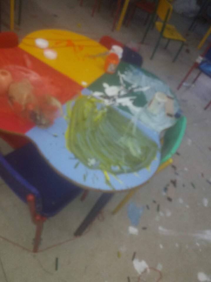 Menores jogaram tintas, espalharam brinquedos  e pintaram o chão de algumas salas, pátio e cisterna
