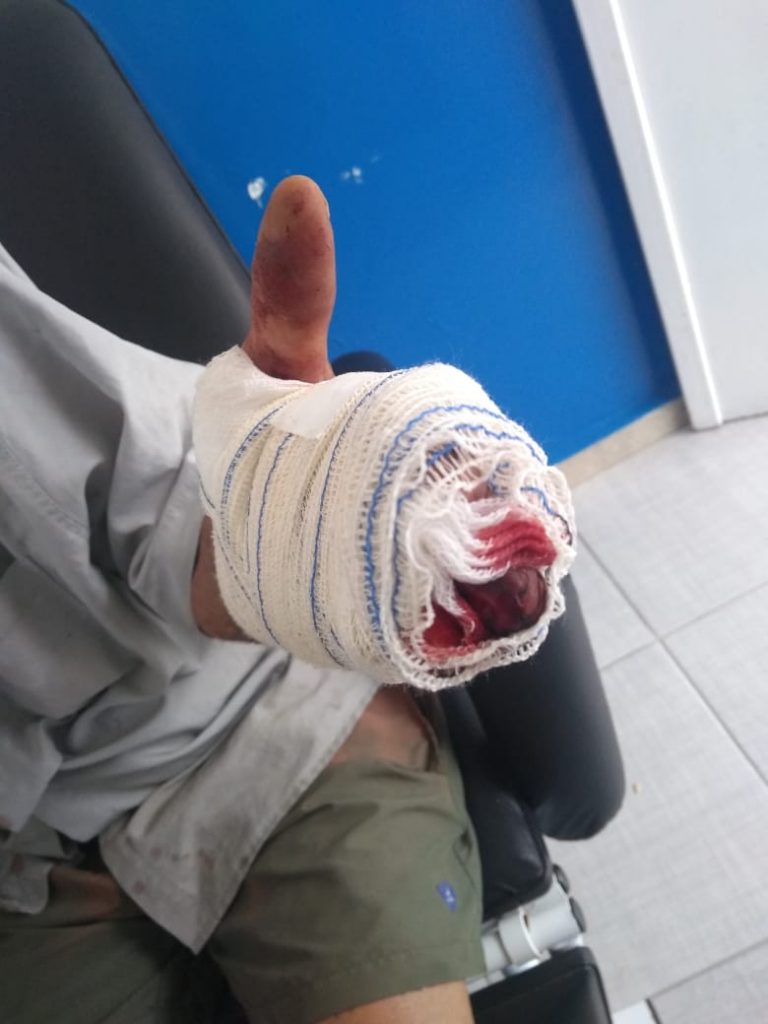Ainda de acordo com os agentes da 122ª Delegacia Policial (122ª DP), que prenderam homem em flagrante, ele desferiu um golpe de facão contra o próprio pai, que se protegeu com o braço. O idoso sofreu grandes ferimentos em sua mão esquerda. Além de um corte profundo, fraturou ossos e teve rompimento no tendão.
