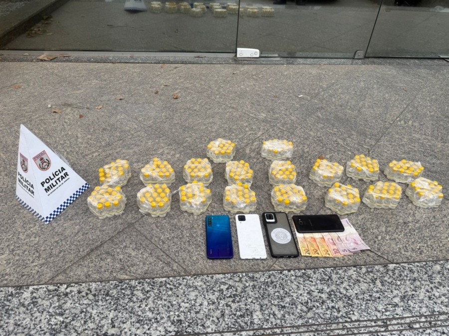 A operação contou com 306 frascos de lança-perfume apreendidos, R$ 80,00 em espécie, quatro celulares e a moto XTZ azul sem placa. A numeração do chassi estava raspada.