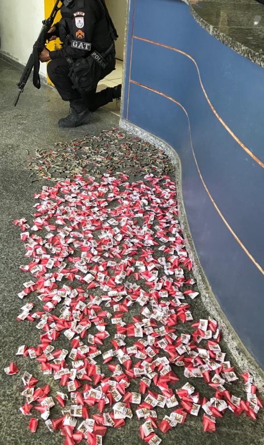 Segundo a ocorrência, o detido confessou que participava do tráfico há apenas três dias e apontou um local onde estava escondido um tonel contendo mais 540 buchas de maconha, 600 pinos de cocaína e caderno com anotações da venda das drogas.