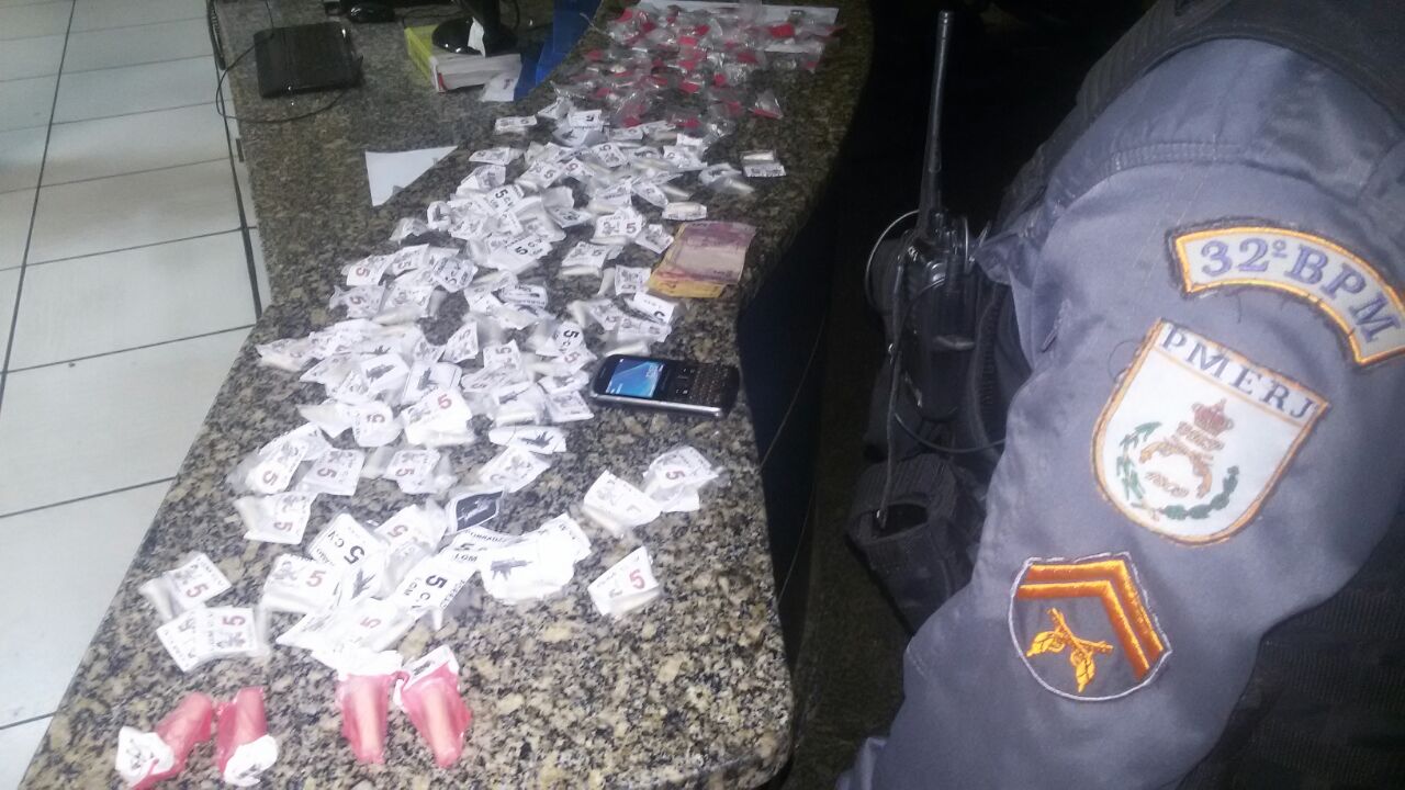 Um homem foi preso por tráfico na madrugada de sábado (6), no Lagomar, em Macaé. A foi deflagrada pela equipe do Grupamento de Ações Táticas da Polícia Militar (GAT), após informações repassadas pelo Disque Denúncia. Durante diligência na Travessa Esperança, os militares do GAT conseguiram alcançar Jhonatan Nunes dos Santos, de 22 anos. Ele resistiu à prisão e subiu em uma laje de uma obra para se desfazer de uma sacola que estava em suas mãos. Dentro dela, a polícia encontrou124 pinos de cocaína e 58 buchas de maconha. De acordo com a Polícia Militar o suspeito é apontado como “vapor” do tráfico na localidade. Jhonatan foi levado para a 128ª Delegacia Policial (Rio das Ostras), onde foi autuado e ficou preso, aguardando transferência para o sistema prisional.