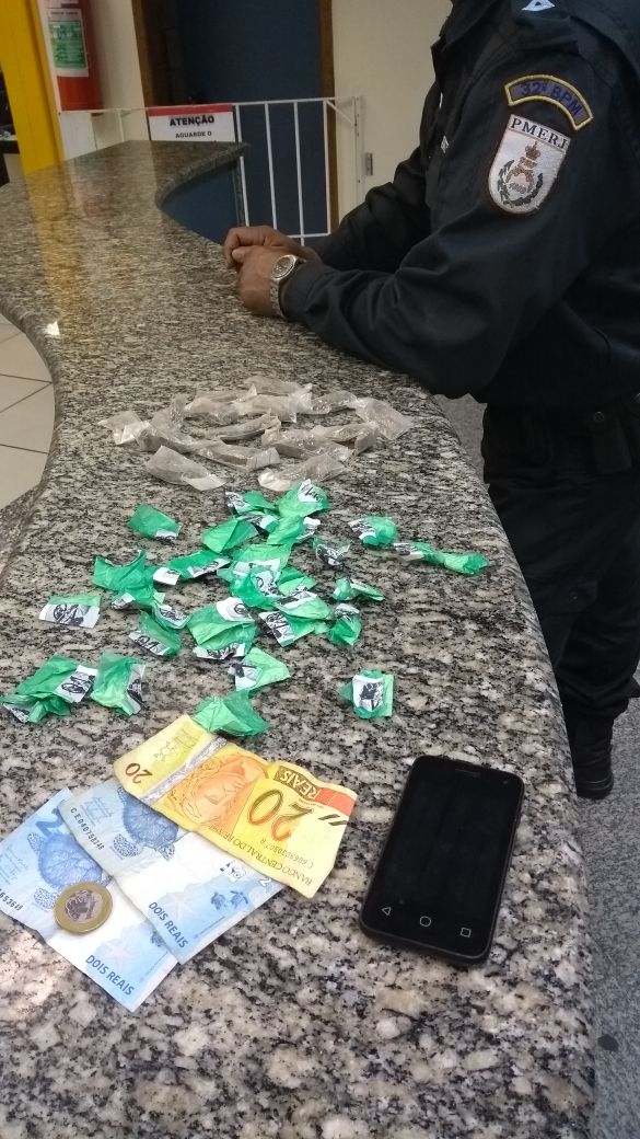 Equipes do Grupamento de Ações Táticas da Polícia Militar (GAT) prenderam um homem por tráfico de entorpecentes na noite de quarta-feira (26), em Rio das Ostras. Bruno Santana da Silva, de 20 anos estava na Rua das Dálias, no Âncora, quando foi abordado. Em revista pessoal, os agentes não encontraram nenhum material ilícito com o suspeito, porém, após receberem informações de que Bruno escondia drogas em um terreno baldio próximo a um salão, a polícia vasculhou o local e encontrou 15 buchas de maconha e 36 papelotes de cocaína. Segundo a PM, após a droga ser encontrada, o suspeito confessou ser vapor de uma facção criminosa e disse ainda que traficava para um elemento conhecido como “Paizão”, que está preso. Bruno foi levado para a 128ª Delegacia Policial de Rio das Ostras (128ª DP), onde foi autuado por tráfico e ficou detido, aguardando transferência para o sistema prisional.