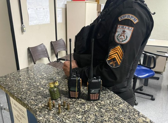 Os policiais revidaram, dando início a um confronto na rua Santa Bárbara. Ao cessar fogo, a PM encontrou uma granada, dois rádios transmissores, seis munições calibre 9mm e uma munição de fuzil 5.56. Ainda no interior da comunidade, a guarnição foi informada de que o criminoso deu entrada no Hospital Público Municipal (HPM), baleado no ombro esquerdo.