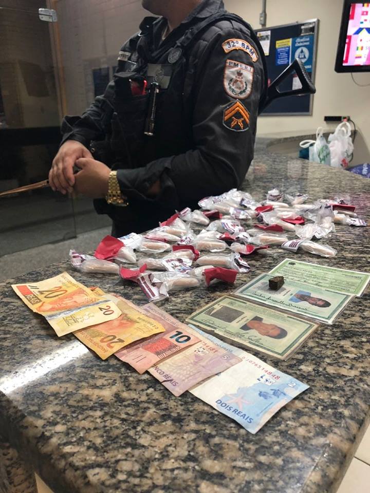 Com o suspeito, a polícia apreendeu 40 pinos de cocaína, além de R$ 57 em espécie.