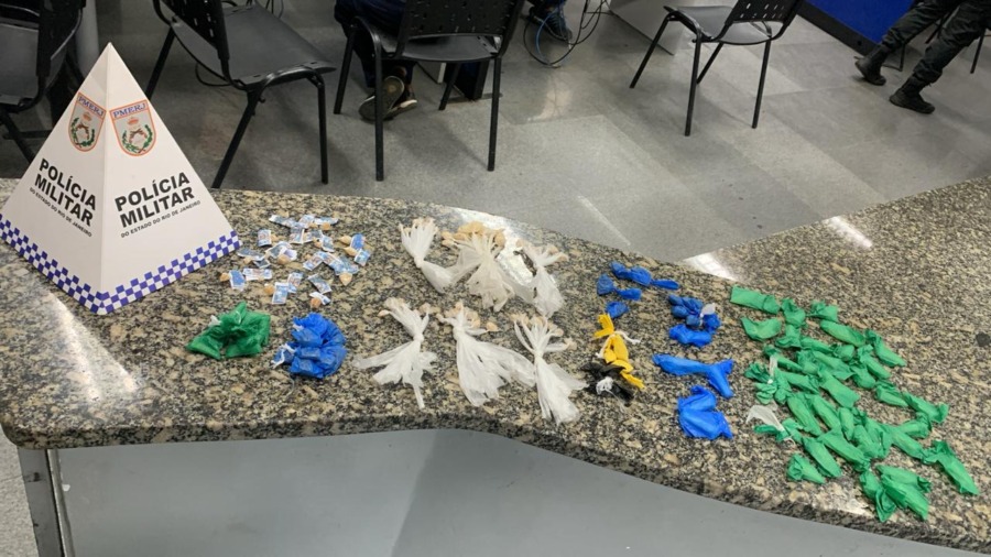 A policia encontrou 22 pedras de crack, 10 pinos de pó branco, 10 sacolés de maconha, 17 buchas de cocaína, 37 pinos de cocaína, 60 pedras de crack e 8 buchas de maconha. Diante do flagrante, o homem foi conduzido para a 123ª DP, onde permaneceu preso com base no artigo 33 de lei 11.343/2006, que trata sobre o tráfico de drogas.