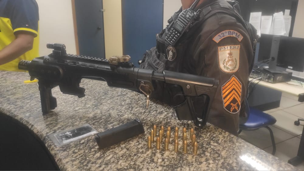 Durante incursão ao local, militares localizaram FP e após revista, foram encontradas com ele um carregador de pistola Glock, 18 munições intactas de calibre 9mm e um Kit Roni, equipamento que converte a pistola em uma arma compacta equipada com trilhos para equipamentos táticos, como luzes e mira óptica.