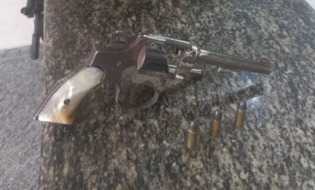 Em revista pessoal, os policiais encontraram um revólver calibre 32, com três munições, escondido na pochete do suspeito. Diante dos fatos, ele foi conduzido para a delegacia, onde foi autuado em flagrante por porte ilegal de arma de fogo de uso permitido.