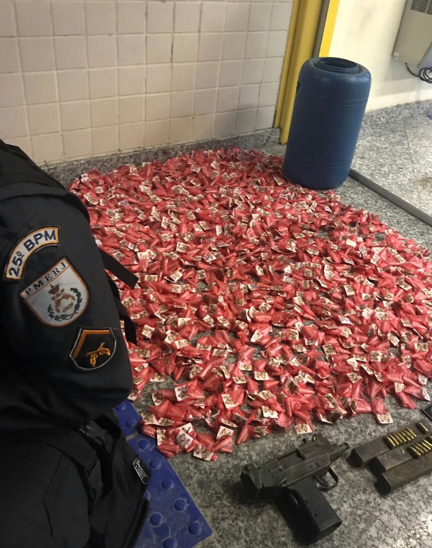 Equipes do Grupamento de Ações Táticas da Polícia Militar (GAT I e II), prenderam um homem com uma submetralhadora, 2.296 cápsulas de cocaína, 16 munições de calibre 9mm e três carregadores da submetralhadora, na noite de ontem (17), em Cabo Frio, na Região dos Lagos.