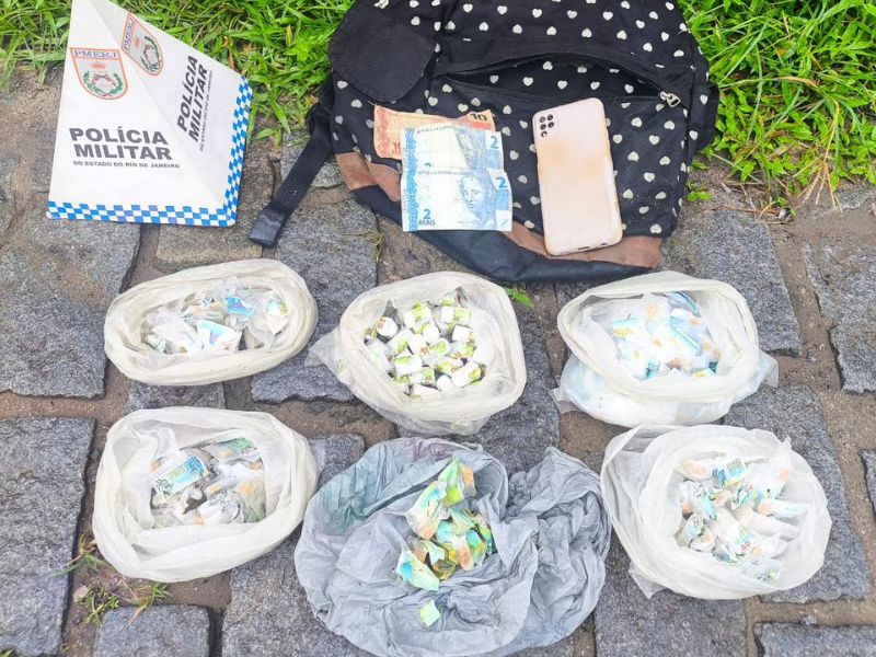 Durante a abordagem, os agentes apreenderam 160 pedras de crack e 37 pinos de cocaína, totalizando 161,4 gramas (g), além de 19 reais em dinheiro e 1 telefone celular, que seria usado nas atividades ilícitas.