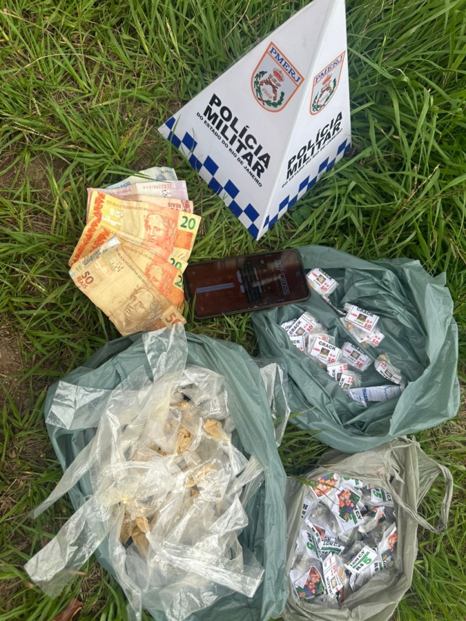 De acordo com a ocorrência, os agentes observaram o homem com uma sacola nas mãos. Ele estava sentado em uma bicicleta em uma área conhecida como ponto de venda de drogas controlado pela facção Comando Vermelho (CV).