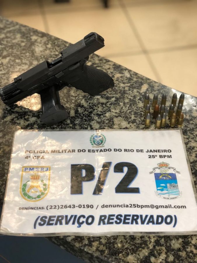 Um homem foi preso com uma pistola calibre 9 milímetros e 15 munições na madrugada desta segunda-feira (29) , na comunidade do Jacaré, em Cabo Frio, na Região dos Lagos.